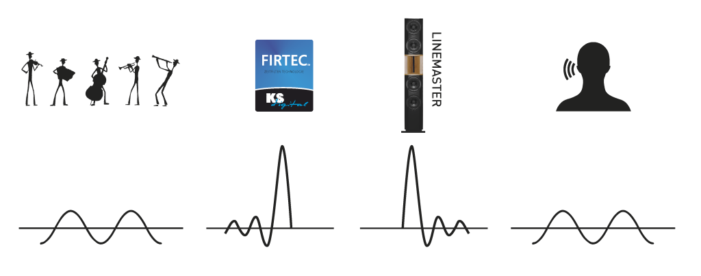 With most speakers, different frequencies arrive to the listener at different times and in non-linear phase. KSD’s FIRTEC™ technology ensures all frequencies arrive at the same time in linear