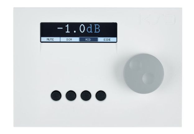 With the volume knob, the monitoring level of all connected speakers can be conveniently adjusted to the exact dB, while the MUTE and DIM buttons with direct access are practical tools in everyday studio use. This makes it possible to connect the speakers directly to the digital master output of the workstation or other full-scale sources. On the A-Line, CX-System and LINEMASTER models, the KSD-RC allows separate monitoring of the mid or side signals (M/S monitoring function with digital connection)